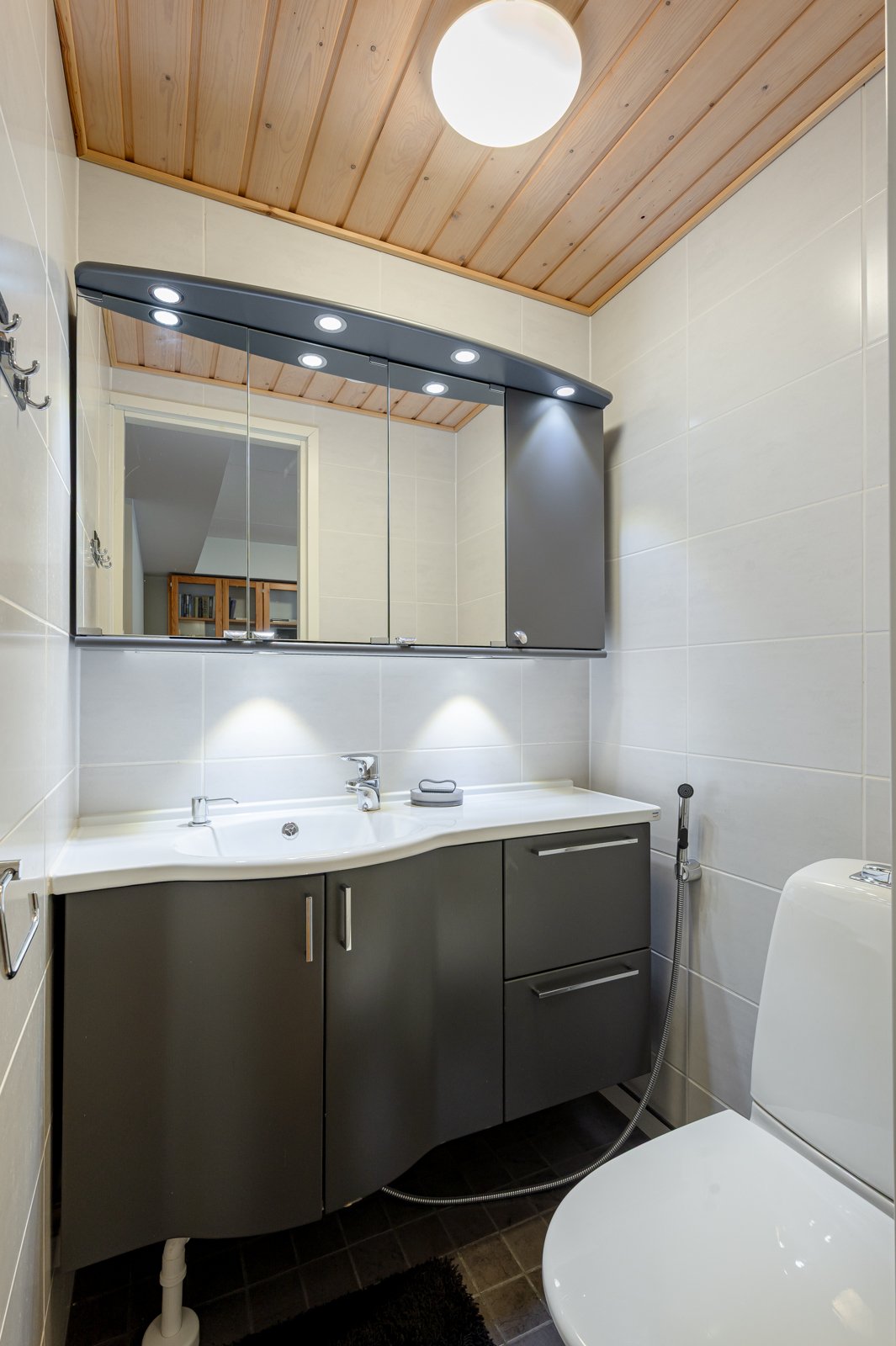 Keskikerroksessa ja alakerrassa erillinen wc.