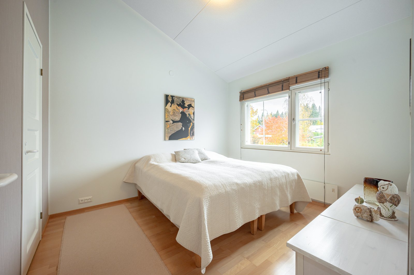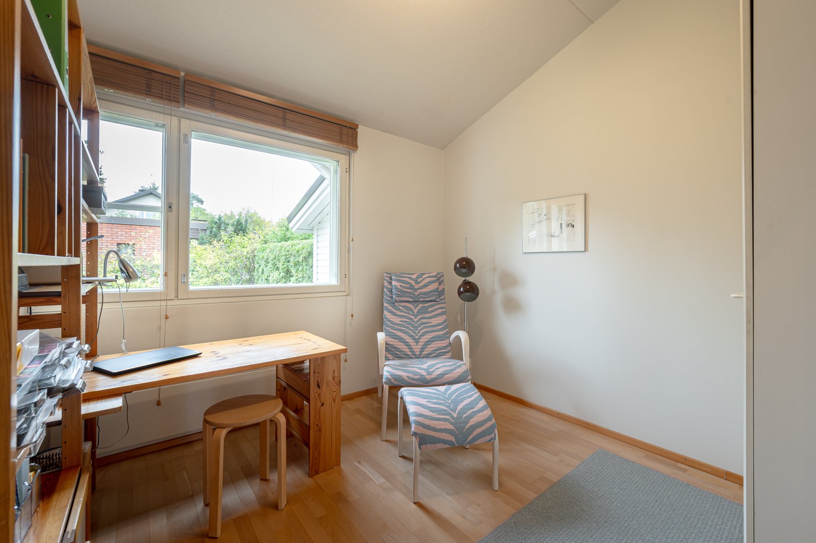 Yläkerrassa isoin makuuhuone, jonka yhteydessä vaatehuone, tapetoitu ja maalattu 2011. Keskikerroksessa ruokailutilan vieressä pienempi makuuhuone, jossa vaatekaappi. Alakerrassa askarteluhuone, joka toimii myös vierashuoneena.