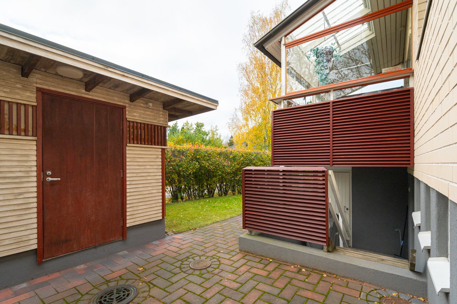 2x vaatehuone, kaapistoja, portaiden alustila, 2 ulkovarastoa.
