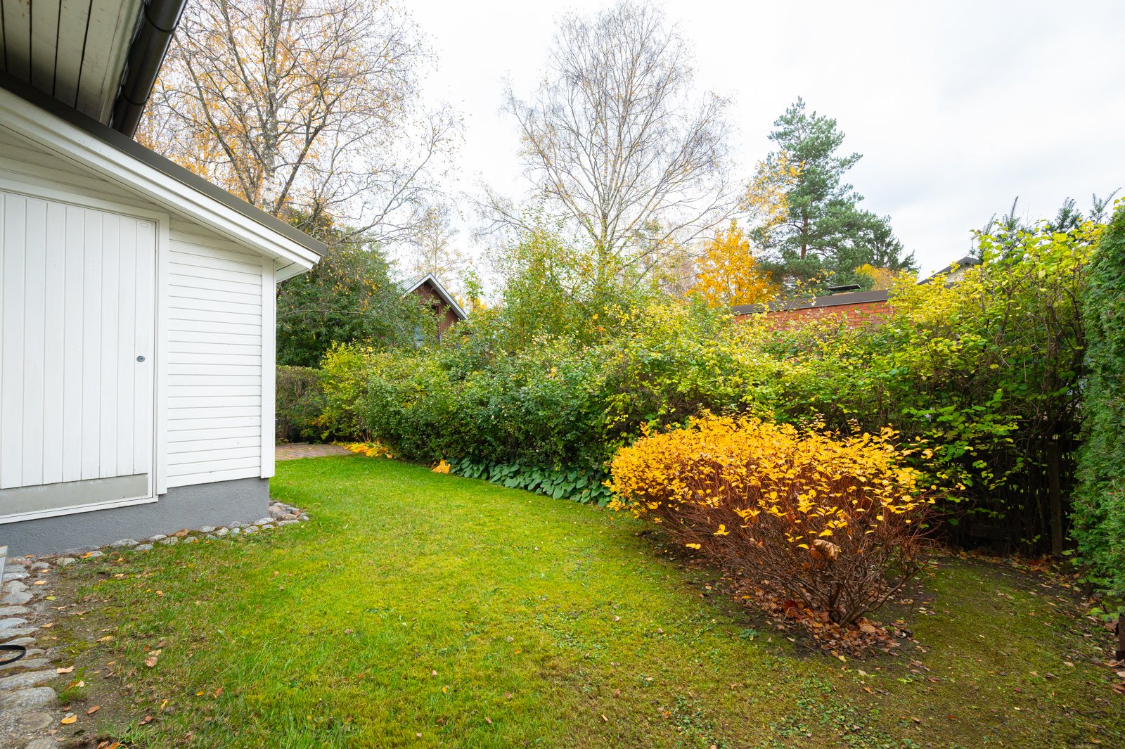 Vehreät pihanäkymät kolmeen ilmansuuntaan.