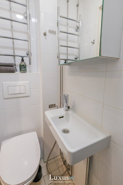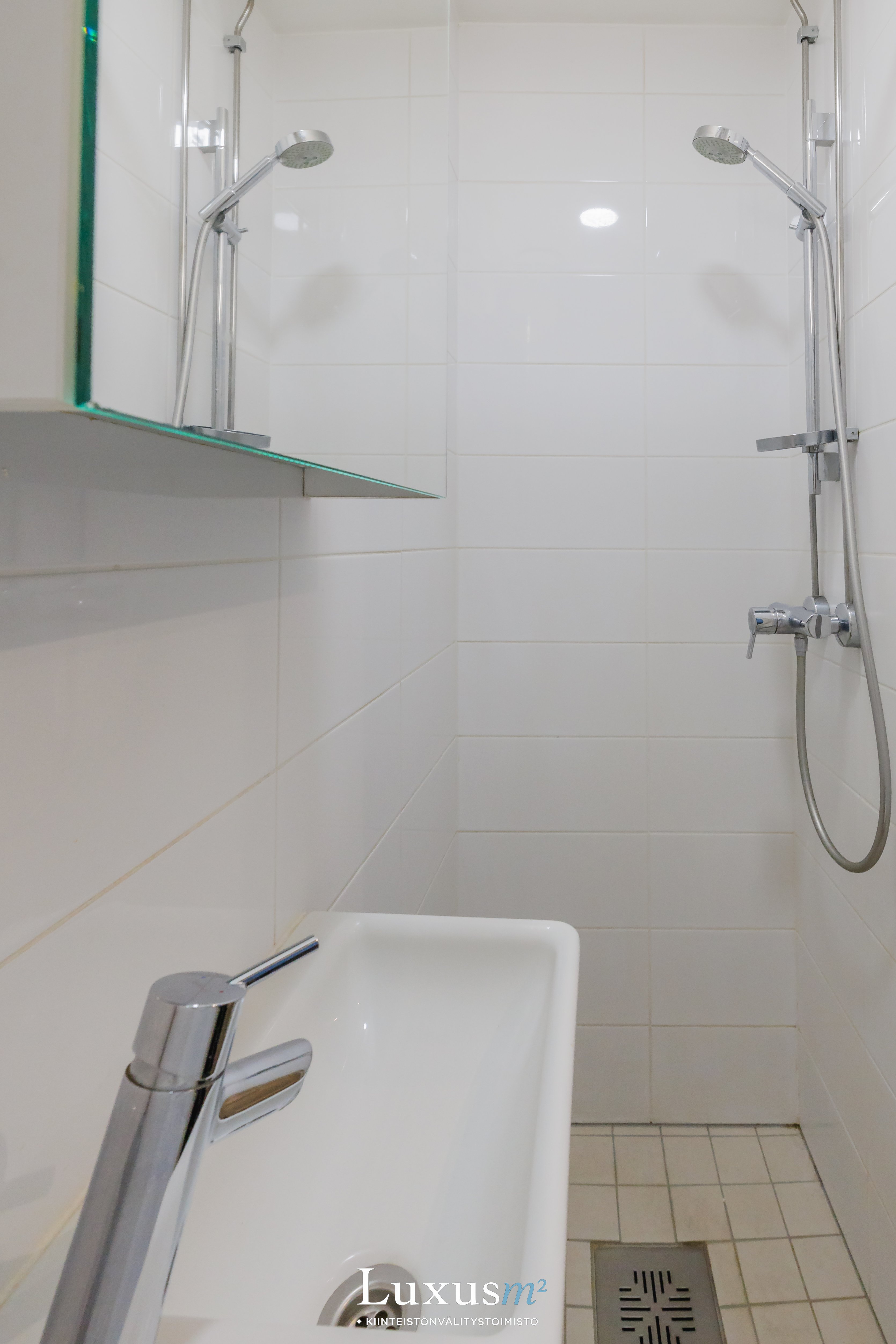 Varustus: Wc-istuin, suihku, allaskaappi, peilikaappi.