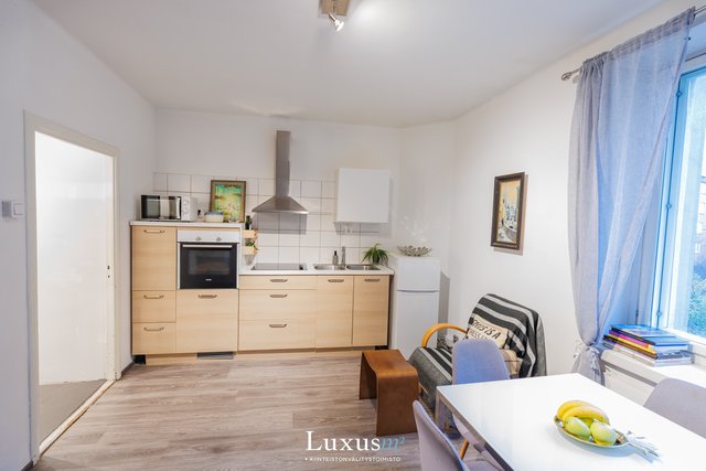 Asunto vuokrataan täysin kalustettuna ja se sisältää kaiken mukavaan oleskeluun – mukavan 160x200 cm sängyn, hyvin varustellun keittiön, raikkaan kylpyhuoneen ja TV:n. Tilat sopivat erinomaisesti yhdelle tai kahdelle hengelle.